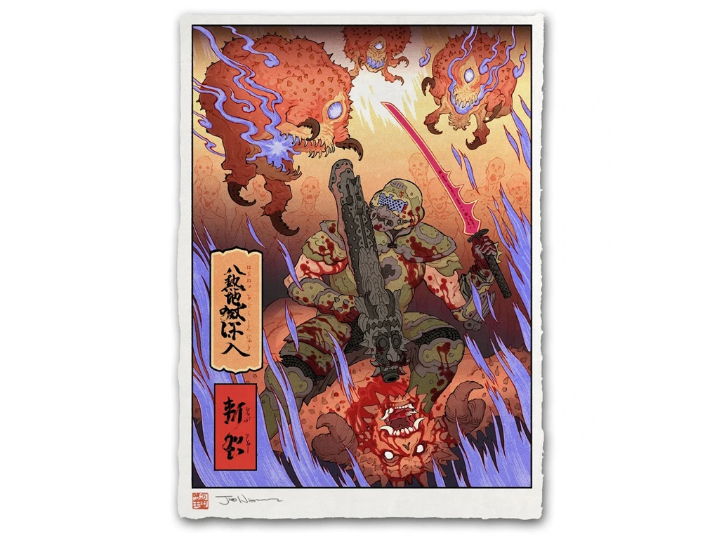 Ces estampes sont réalisées par Jed Henry, un illustrateur qui a vécu deux ans au Japon. Il collabore depuis avec Dave Bull qui vit à Tokyo depuis près de 30 ans où il a appris l’art de l’ukiyo-e et en vit depuis 25 ans en tant qu’artisan spécialisé dans cette technique traditionnelle japonaise d’impression à partir de blocs de bois.