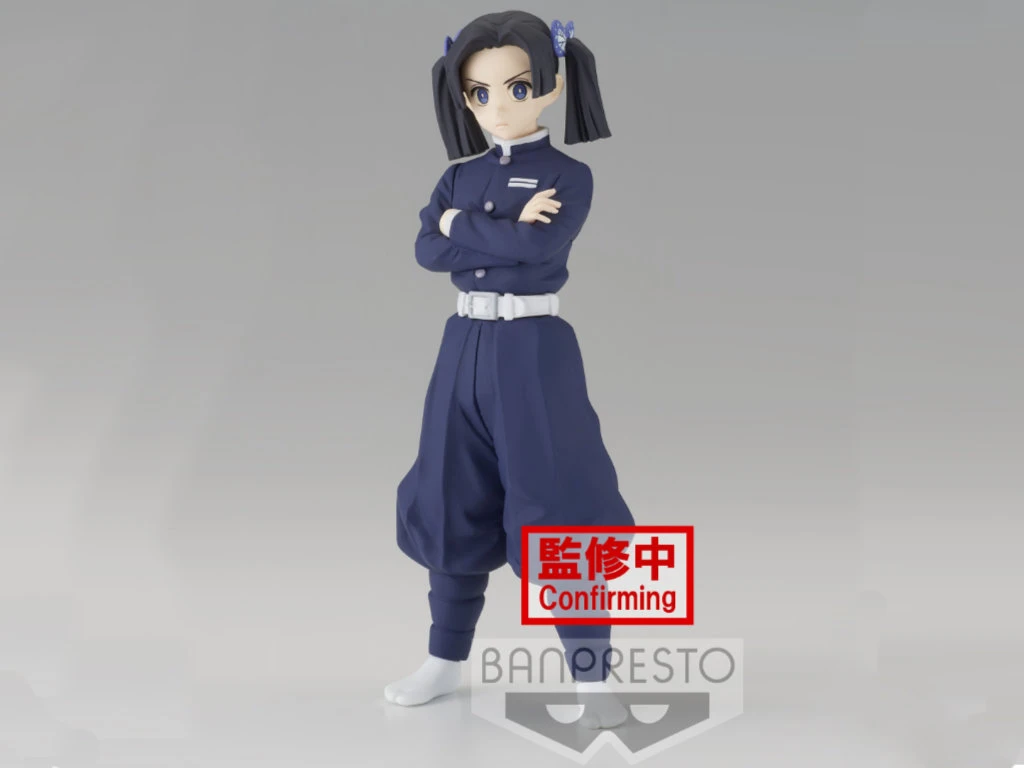 Ce personnage de la maison des papillons est représenté ici dans la tenue traditionnelle des chasseurs de démon, du manga « Demon Slayer » (Kimetsu no Yaiba).