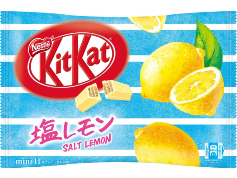 Cette version du kit-kat vous propose une association originale de l’acidité du citron au sel qui viendra développé le goût d’agrume de ce fruit.