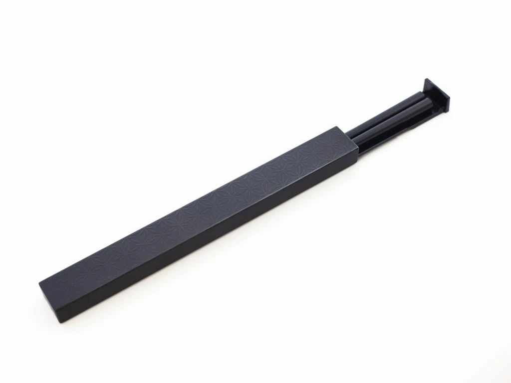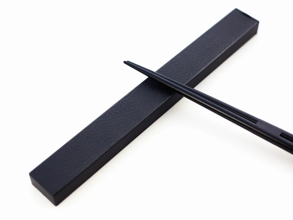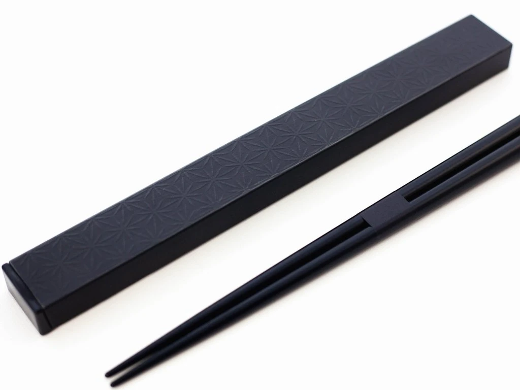 Envie d’une paire de baguettes en boite, d’une longueur « normale »? Ce modèle est fait pour vous! La paire de baguettes mesure 20,5 cm de long et est accompagnĂ©e d’une boite Ă glissière non seulement pratique mais Ă©galement joliment Ă©corĂ©e du motif « asanoha », rĂ©alisĂ© en relier sur le dessus.