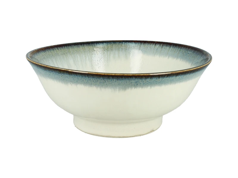 Le coté épuré de ce bol à ramen, d’un joli blanc laiteux légèrement rehaussé d’un fin liseré bleu sur la bordure, possède une esthétique toute particulière qui vous séduira certainement.
