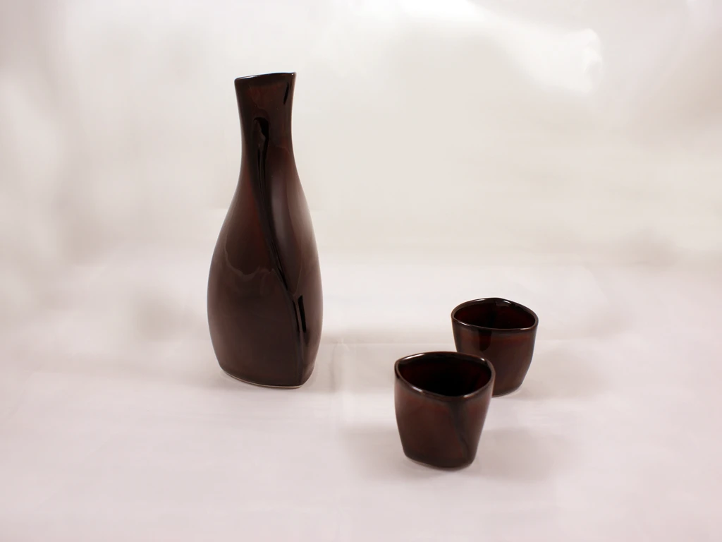 Ce service à saké est très représentatif de cette approche avec une forme élégante associée à une porcelaine aux effets laqués très réussis.