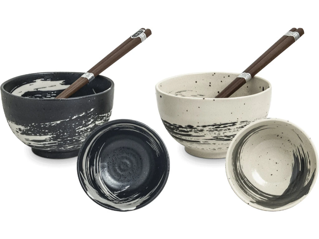 Avec cette jolie paire de bols, vous serez en plein dans l’esprit du « wabi sabi » : D’une déco très sobre reprenant le concept du cercle zen « maru », un des bols sera en blanc sur fond noir, et l’autre vice-versa.