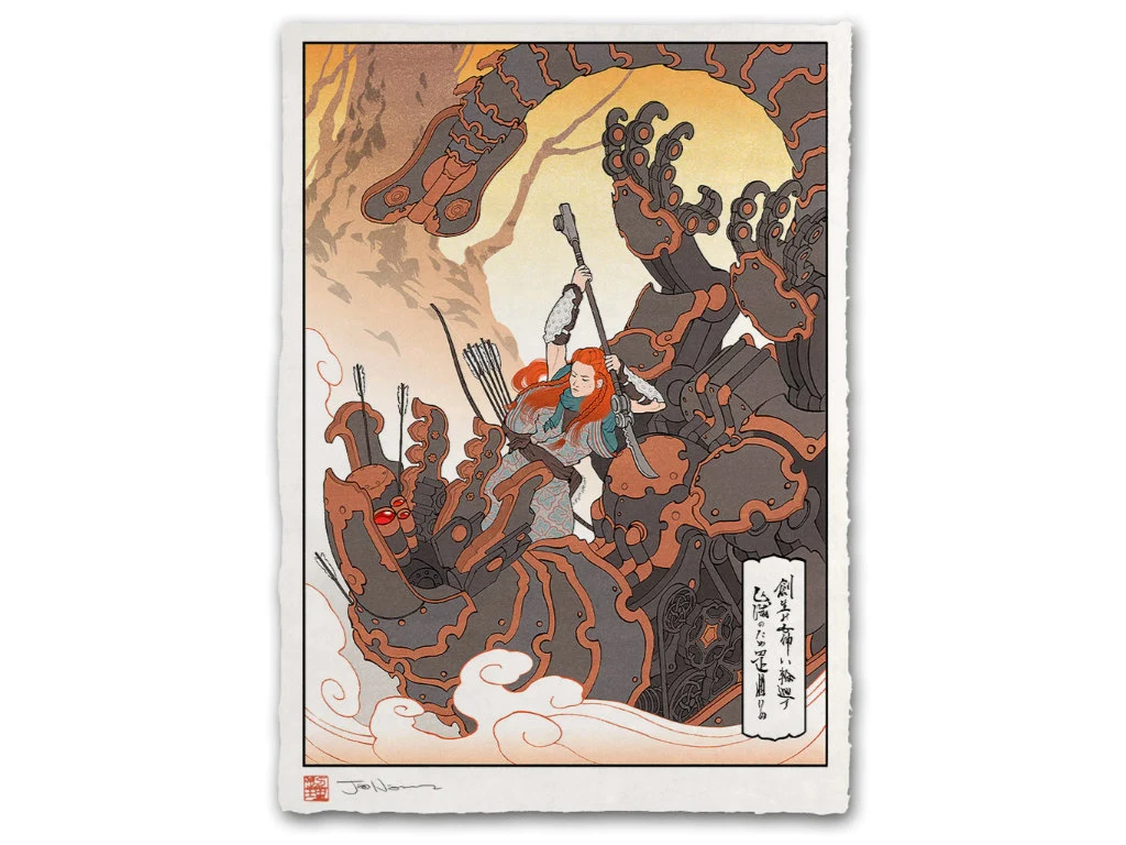 La difficulté fut évidemment d’arriver à intégrer les robots futuristes de ce jeu à l’esthétique des ukiyo-e du XIXè siècle.