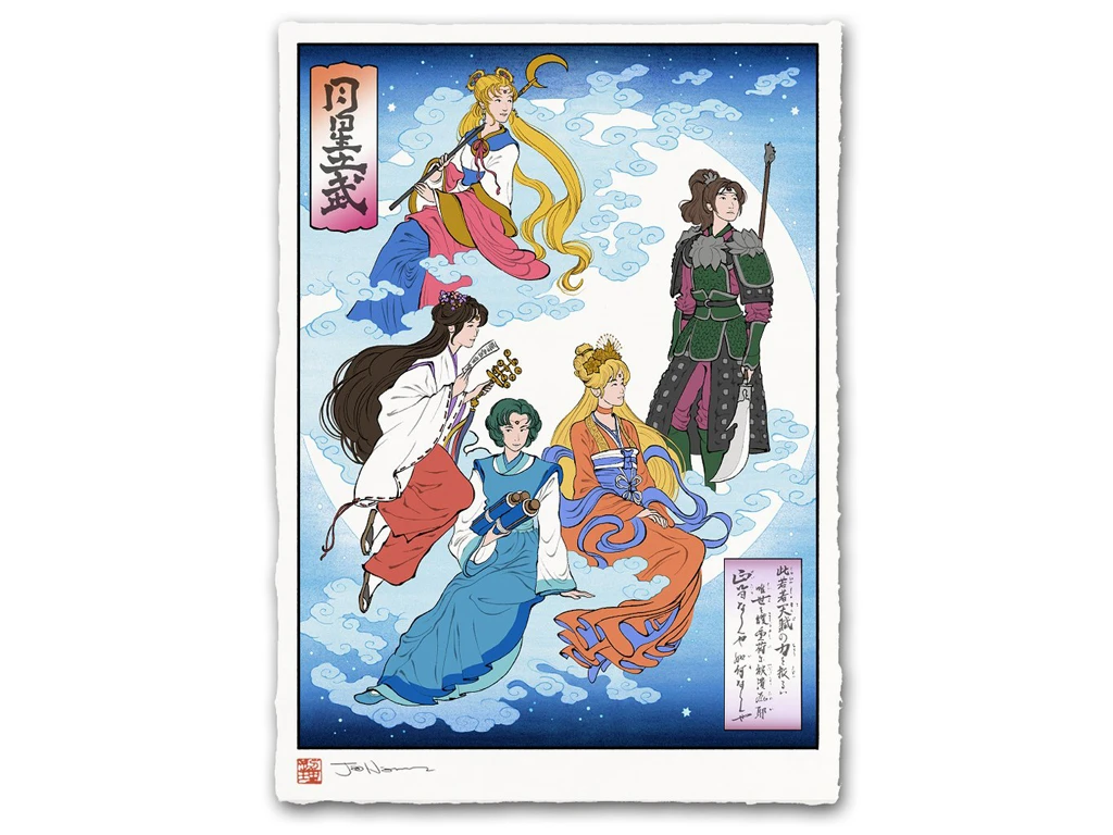 En partant de cette même source d’inspiration, l’artiste revisite les personnages de Sailor Moon à la sauce Hokusai.
