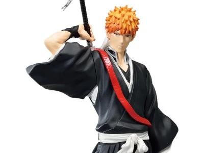 Le personnage principal du manga Bleach nous est présenté ici dans une posture statique mais menaçante, Ichigo étant déjà prêt à dégainer son sabre.