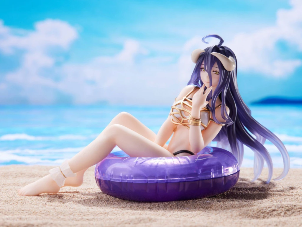 TirĂ©e de l’anime Overlord, cette figurine de la cĂ©lèbre PNJ d’Yggdrasil, Albedo, est en effet reprĂ©sentĂ©e dans une atitude très dĂ©tendue, en bikini, installĂ©e sur une Ă©norme bouĂ©e.