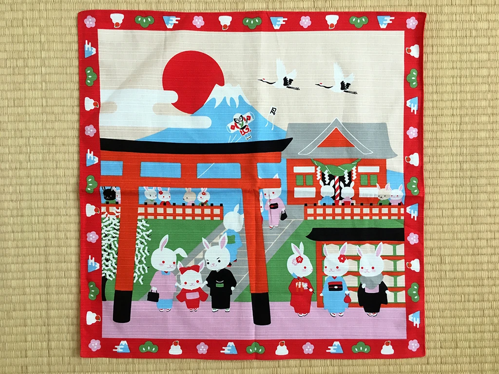 Voici un furoshiki dont le décor assume ses origines !