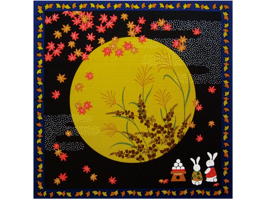 Ce petit carrĂ© de tissu vous en propose une version automnale dĂ©corĂ©e des fameux « momiji », les feuilles d’Ă©rables rouges, sous le regard très kawaĂŻ de petits lapins tous mignons.