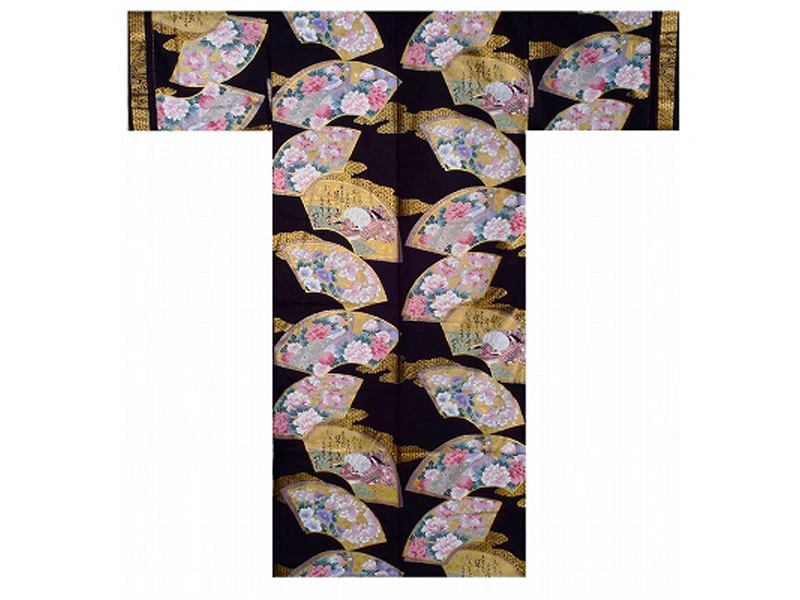 Sur un beau fond noir, les dorures mettent en avant des décors floraux présentés dans des motifs en forme d’éventails.