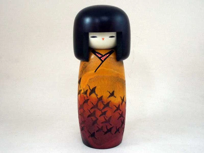 C’est justement cet animal qui sert de dĂ©coration Ă cette jolie kokeshi dont les couleurs ne sont pas sans rappeler un beau crĂ©puscule.