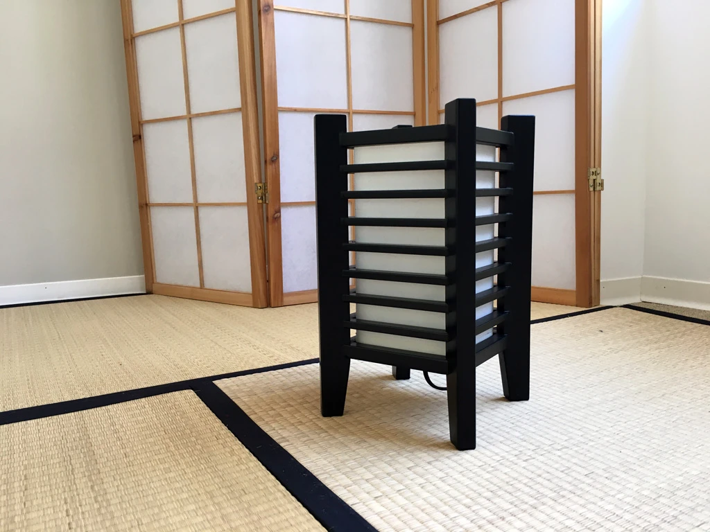 Bien que d’un style assez moderne, on retrouve bien dans cette lampe l’esprit des maisons et des lampions traditionnels japonais.