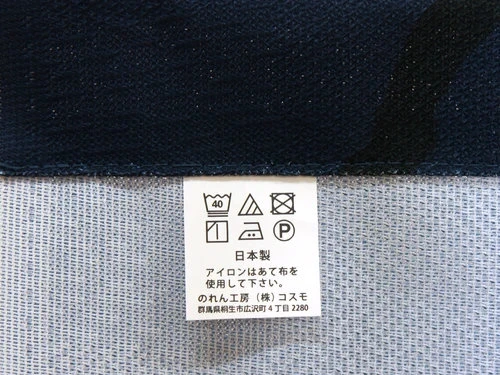 L’accrochage est simplifiĂ© par la prĂ©sence d’un passant en haut du noren, laissant facilement s’y glisser une tringle Ă rideau.