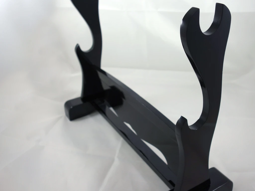 Joli support à katana en bois laqué, fabriqué au Japon par la maison « Ohzawa sekiryu » à Seki, ville célèbre pour sa coutellerie.