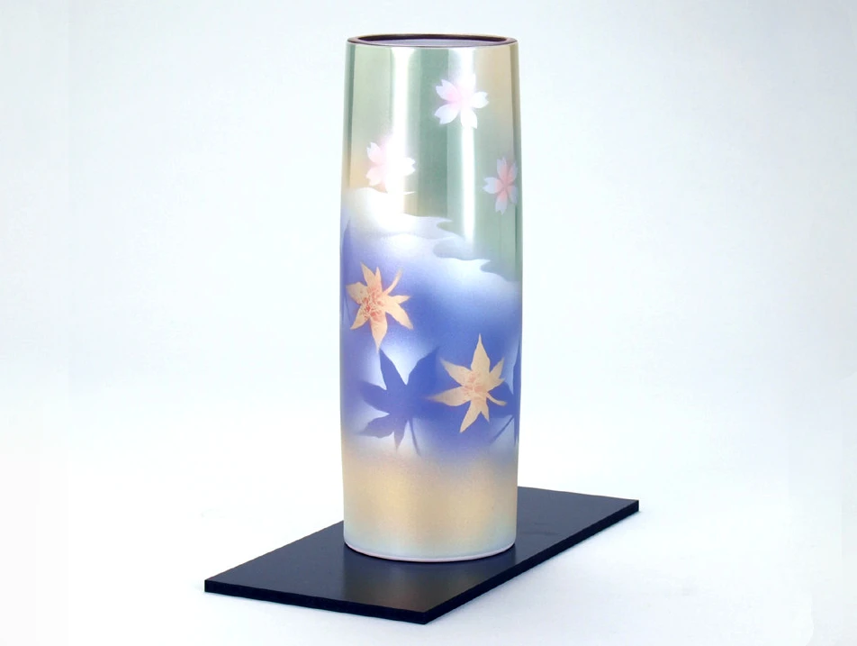 Tout en conservant l’esprit nébuleux des céramiques kutaniyaki, Konjaku vous propose ici une version un peu plus moderne tant au niveau de la forme extrêmement épurée, que du design dans des tons pastels, faisant se cotoyer les sakura (fleurs de cerisier japonais) du printemps et les momiji (feuilles d »érables japonais) de l’automne.