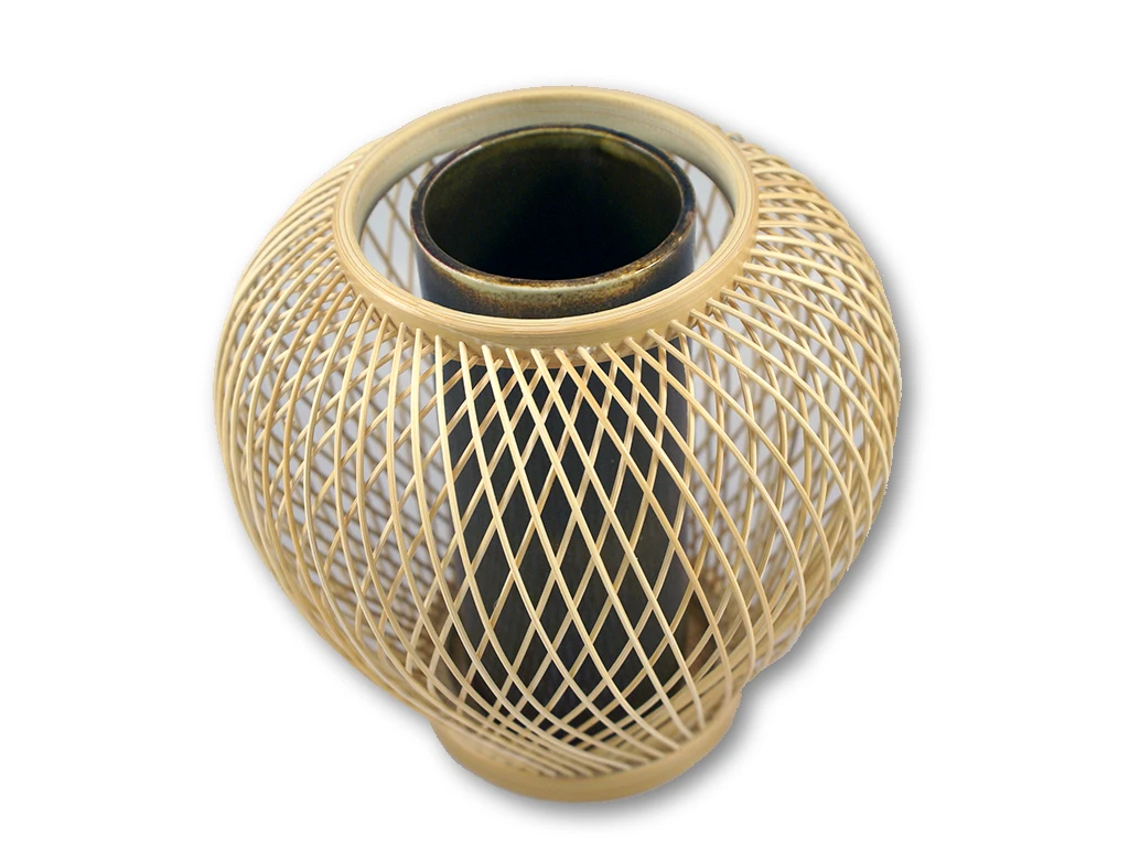 Beau vase de bambou avec cylindre en céramique pour accueillir vos plus jolis bouquets.